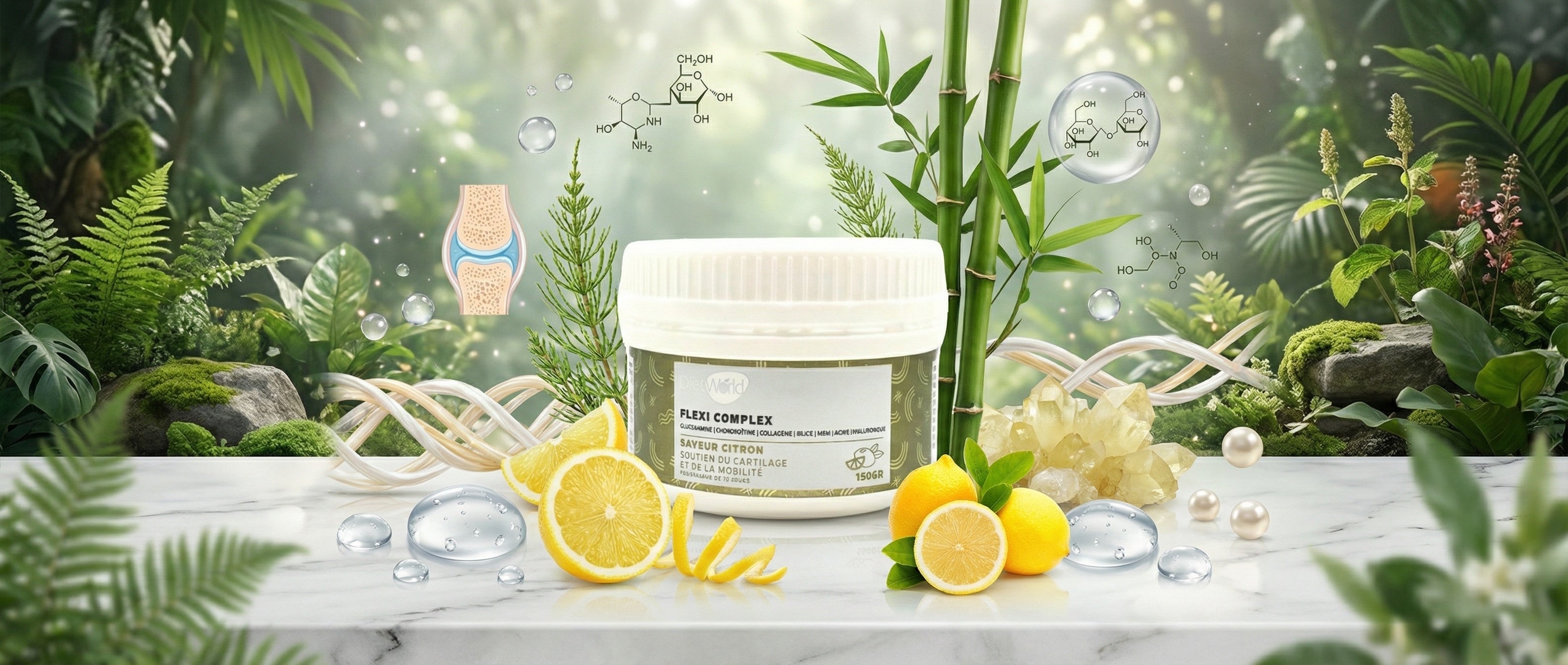 Le collagène est décomposé en peptides et acides aminés. Le corps peut les utiliser pour stimuler la production de nouveau collagène, contribuant ainsi à la régénération des tissus articulaires. d’acides...