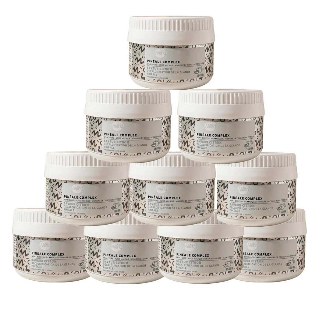 Lot de 10 Pinéale Complex, le premier complément alimentaire en poudre permettant de décalcifier la glande pinéale. Formulé à partir d’ingrédients hautement biodisponibles, il combine MSM, Bore, acide malique, vinaigre de cidre et acide citrique pour soutenir la détoxification de la naturelle de la glande pinéale par décalcification.